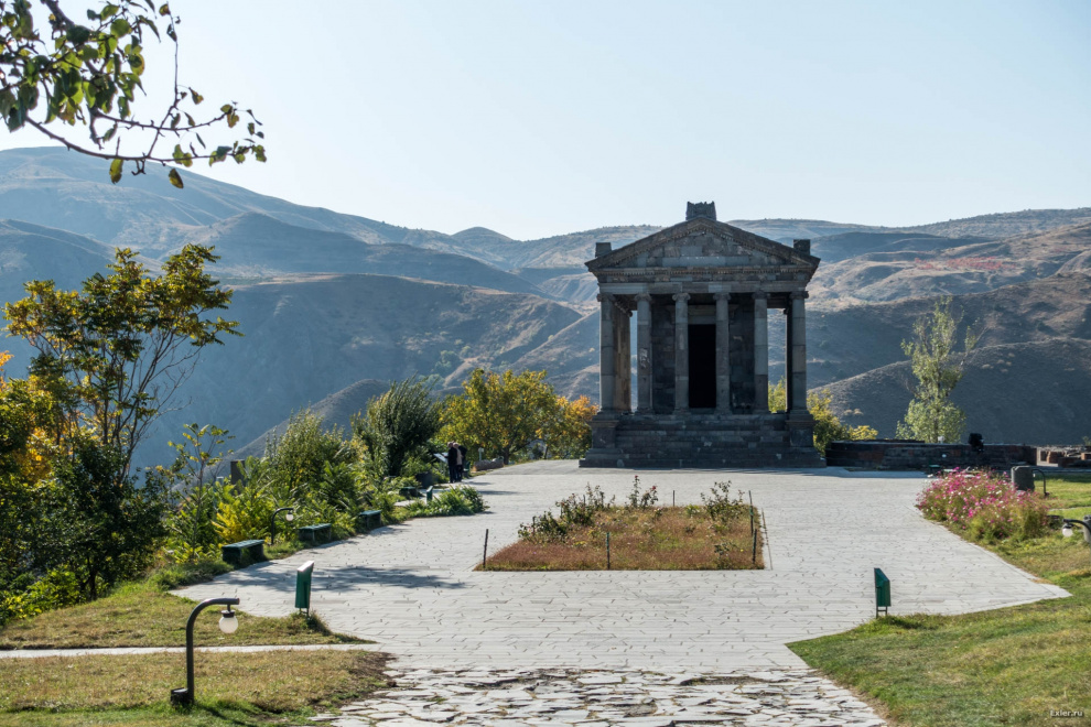 Храм Гарни, посвященный древнеармянскому богу Солнца Митру (Михру) - единственный сохранившийся во всем регионе памятник римской эпохи. Ну и как мы могли на него не взглянуть? Тем более что храм, как нам сказали, стоит в красивейшем ущелье.