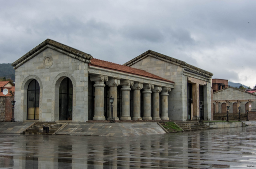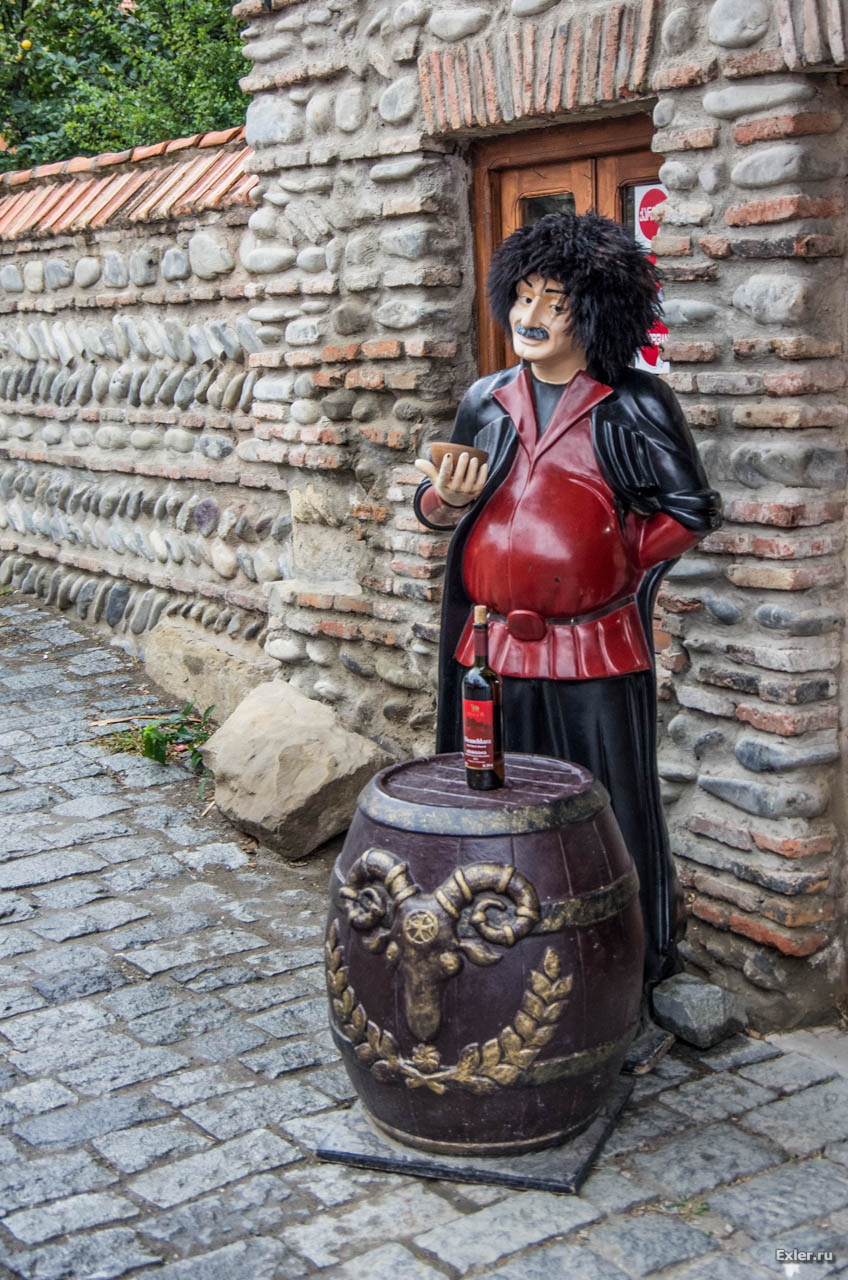У стоянки перед архитектурным комплексом торгуют всякими сувенирами - "кепками-аэродромами", бурками, сивыми каурками и так далее, - а на входе расположено несколько ресторанчиков и винных магазинчиков с грузинским вином.