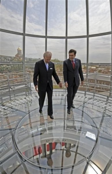 Причем в куполе еще и стеклянный пол - вот фотография встречи Саакашвили и Байдена. (Фото отсюда.)