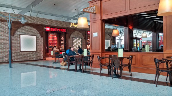 Мне совсем не улыбается беседовать с дамой, которая упорно хочет разговаривать по-английски, зная на этом языке два-три слова, поэтому я иду к другой даме. Та спокойно говорит по-русски, быстренько пролистывает паспорт, ставит выездной штамп, и мы еще пару минут с ней общаемся по поводу часов Samsung Gear, которые виднеются у нее на руке (очереди нет никакой), оба приходим к выводу, что часы - полное барахло, после чего мы с Каталаном идем пить кофе в ожидании посадки.