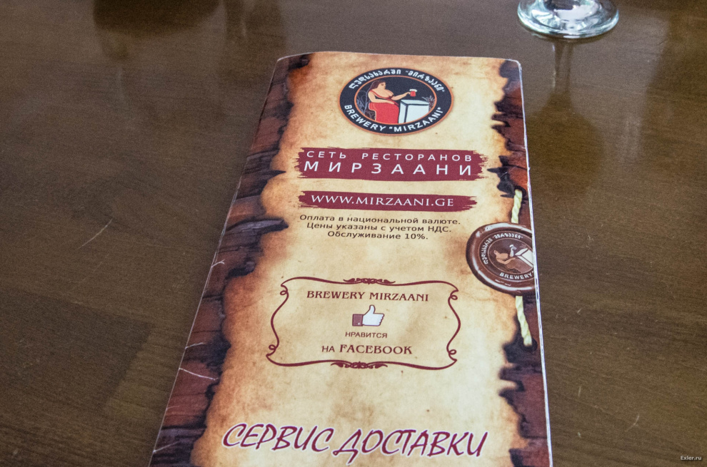 Обедать отправились в ресторан "Мирзаани" (Старый Тбилиси, ул. Gorgasali, 1) - это довольно известная сеть, названная в честь кахетинского села Мирзаани, где родился художник Нико Пиросманишвили (миллион, миллион, миллион алых роз - это про него). И это не просто ресторан, но еще и пивоварня. Мы даже взяли местного пива попробовать, хотя приезжали в Грузию вовсе не за пивом.