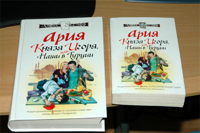 Повесть "Ария князя Игоря, или Наши в Турции" вышла в формате покетбук. Я сам не знал, обнаружил вчера в киоске в метро. Покетбук американского типа получился - 600 страниц. В магазинах должен стоить не больше 50 рублей. Впрочем, в киосках метро его продают аж за 100 рублей, но там наценка почти в два раза по сравнению с обычными магазинами. Ну и хоть обложку исправили, а то в твердой обложке здоровенный ляп пропустили.