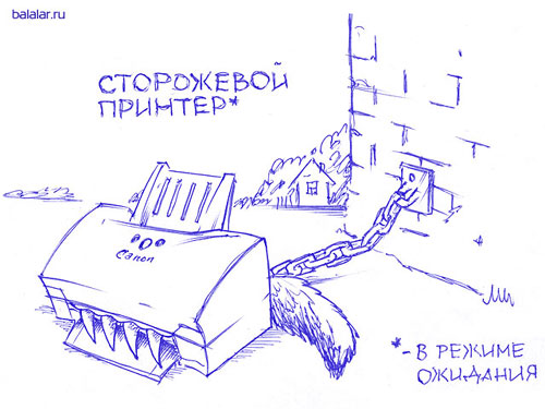 Дизайн сайта Balalar.ru целиком и полностью сделан из отсканированных рисунков, нарисованных шариковой ручкой. Смотрится очень стильно и забавно. Да и содержимое - вполне достойное: различные заметки, наблюдения, фотографии, рассказики, а главное - рисунки. Рисунки замечательные - веселые и прикольные. Вот, например, сторожевой принтер:
