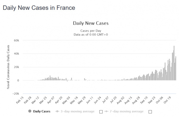 При этом во Франции выявляется 30-50 тысяч в день (называть их "заболевшими" - гнуснейшее передергивание, потому что это просто носители вируса, никаких симптомов там не имеет 70%), что неудивительно, потому что тестирование с марта увеличилось на порядки