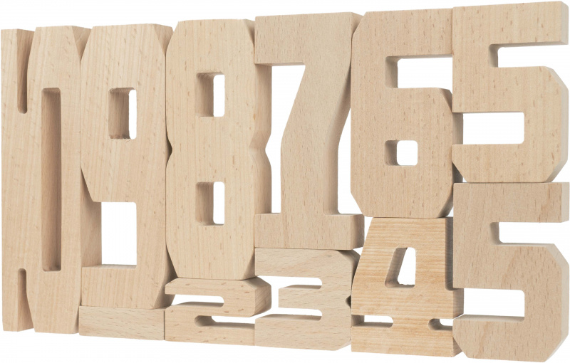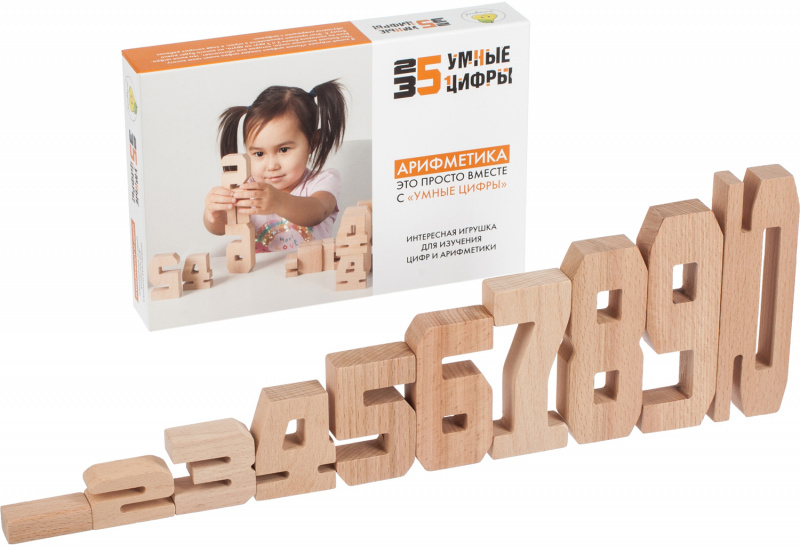 Это специальный конструктор, который целиком состоит из больших деревянных цифр. Такая концепция сама по себе очень хороша: ребёнок видит, например, единицу и понимает, что это – цифра. Исчезает самый главный барьер, не нужно представлять себе какую-то абстракцию и увязывать знакомые предметы с незнакомыми терминами.