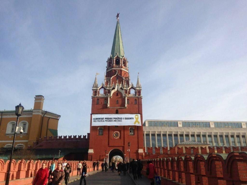 На Кремле висит баннер "Свободу каталонским политзаключенным" - такой баннер висит в каждом каталонском городке.