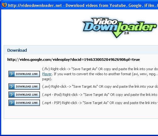 На Theweblog.net нашел очень полезную ссылочку - плагин для скачивания видео с различных видеохостингов. (Для FireFox.) После установки появляется иконка с правом нижнем углу браузера и при нажатии она выдает список прямых линков на различные видеоформаты (если таковые там представлены), с помощью которых видеофайл можно скачать на компьютер, а не просматривать на сайте (во многих случаях это весьма актуально). Например, вот на этой страничке Google Video с роликом пародии на Копперфильда плагин выдает вот такой список: