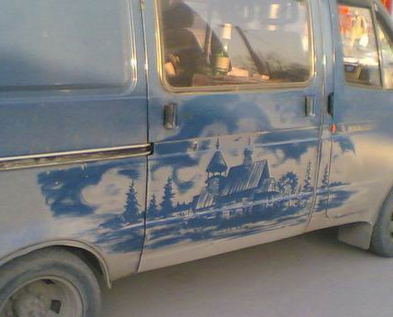 Даже просто на грязной "Газели" можно скреативить нечто весьма креативное (отсюда):