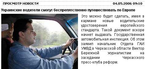 Статью об украинских водителях сопровождает фотография российского гражданина - наполовину русского, наполовину еврея, - едущего за рулем американского автомобиля Chevrolet по территории Латвии, причем внутри водителя плещется примерно сто граммов шотландского виски (было очень холодно).
