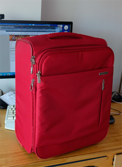 Купил вот такой салонный Samsonite (он совсем недорогой, потому что матерчатый) - и в него у меня все помещается.