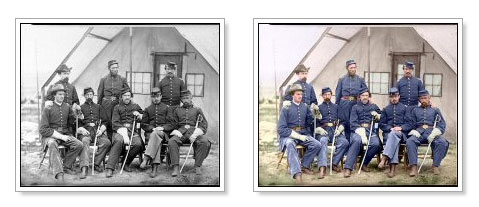 Сайт программы Recolored, с помощью которой можно раскрашивать черно-белые фотографии. Я проверил - и правда работает. Делается это достаточно быстро (вам нужно просто примерно очертить основные области на фото и задать их структуру), а результат получается вполне неплохой. Скачать ее можно здесь. Вот примеры обработанных фото: