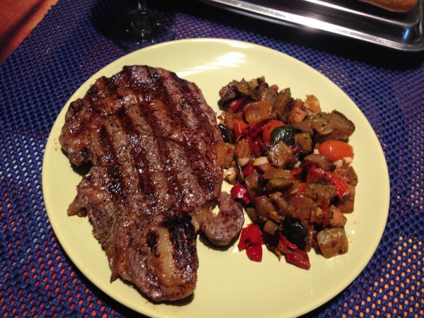 Общее время приготовления 2-4 минуты на стороне (в зависимости от толщины куска), после чего складываем куски в емкость, накрываем и даем мясу «дойти» в теплом месте до нужной вам кондиции 5-10 мин. Можно использовать духовку, нагретую до 70 гр. Однако мы просто оставляем мясо под крышкой рядом с грилем.