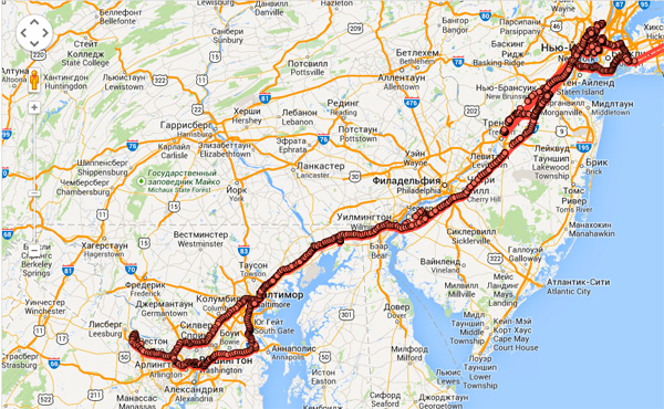Данные местоположения хранятся в вашей учетной записи в Google и их, оказывается, спокойно можно посмотреть вот здесь (залогиниться надо под соответствующей учеткой Google). Вот, например, мои перемещения по Штатам - все четко.