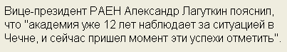 Статья в Ленте. Лагуткин объясняет, за что Рамзан Кадыров получил звание почетного академика. Просто одна цитата: