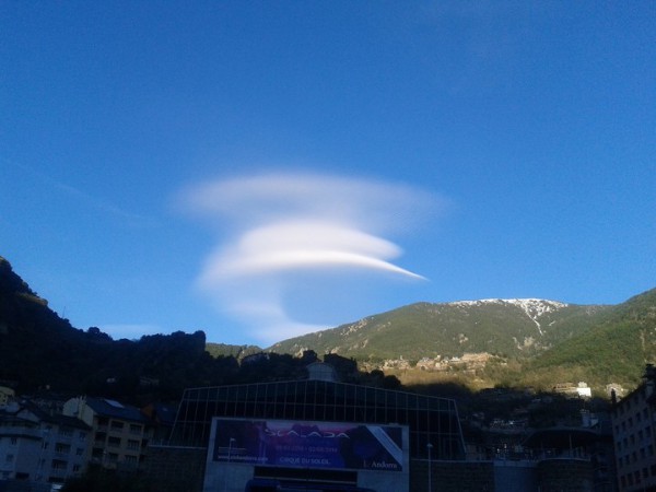 На испанском погодном сайте сегодня опубликовали фото облака, висящего над Андоррой. Прям летающая тарелка.