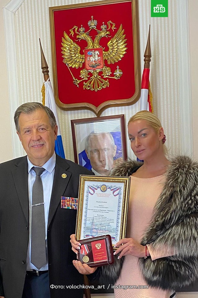Прекрасная новость номер один - Настя Волочкова получила награду от Национального комитета общественного контроля РФ из рук почетного ветерана МВД Юсупова Мансура Рамиловича.