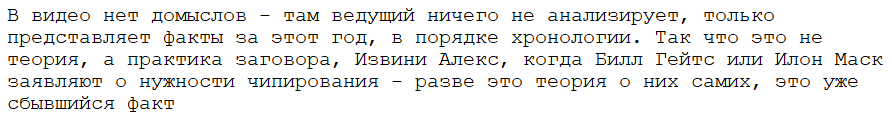 Я ролик глянул, там какой-то прыщавый феномен очень уныло пересказывает все эти дебильные байки про чипизирование, мировую еврейскую закулису и так далее.