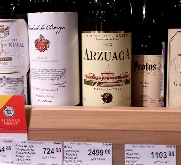 А вот как раз к вопросу о ценообразовании на вино. "Арсуага крианса" - замечательное испанское вино из Рибера-дель-Дуэро. В Испании я его покупаю за 12 с чем-то евро. В России в обычном магазине - 2499 рублей, то есть 53 евро. 53 евро делим на 12 - 4,4 раза. То есть больше четырех концов. Ни фига себе, сказала я себе. Поставщики утверждают, что обычно не больше 3 концов - для конечного потребителя, то есть для магазинов.