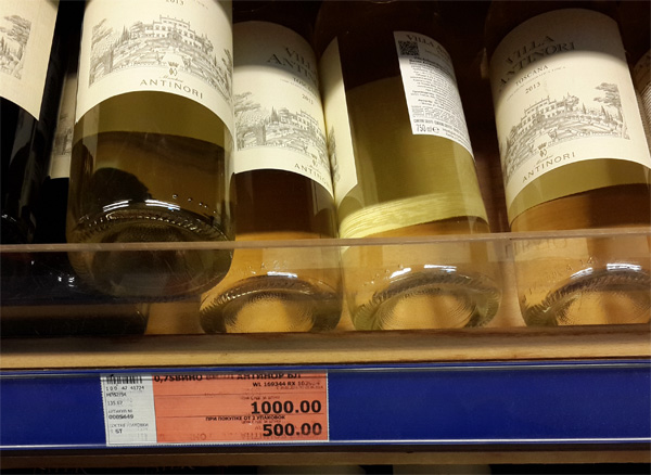 Заехал в Metro, заскочил в винный отдел - увидел офигенную акцию: две бутылки белого "Вилла Антинори" по цене одной. У них и так-то белая "Вилла" стоит 1000 рублей, а в обычных магазинах - 1200-1300, а тут еще вообще за 500 рублей бутылка, если берешь две (ну и за 2000 - если берешь четыре и так далее). А вино отличное.