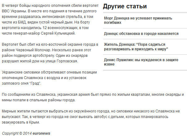 Александр обратил внимание на интересный факт: насколько в Euronews меняется текст одной и той же статьи, если выбирать различные языки. Оно, конечно, понятно, что правда - для всех своя и международным СМИ приходится "бегать между струйками", но тем не менее.