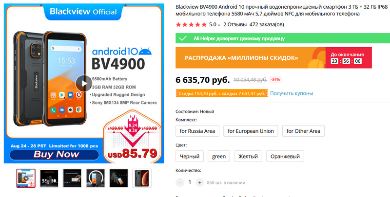 Компания BlackView выпустила новый защищенный смартфон по очень странной цене. Модель называется Blackview BV4900 (вот ее страница на сайте разработчика), и сейчас на распродаже они его продают в официальном магазине за 6635 рублей.