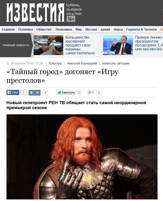 Наш ответ на "Игру престолов". Даже по трейлеру виден масштаб бедствия и уровень дарования постановщиков. Но посмотрим, конечно, а вдруг у них получился гениальный сериал, кто его знает... ![]()