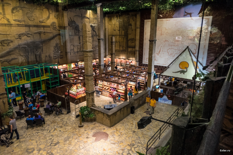 Основное здание "Динополиса": тут находится 3D-кинотеатр, в котором крутят мультик про белого динозавра, аттракцион с поездкой вагончика по всяким динозаврим местам, детская площадка, магазин сувениров (на выходе), а на втором этаже - ресторанчики с наборами питания для детей и детский кукольный театр.