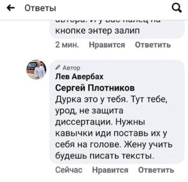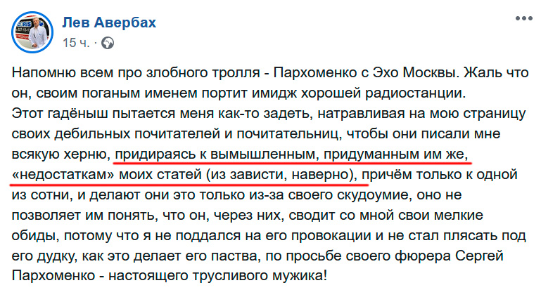 И ровно через пару часов в FB Сергея Пархоменко снова натыкаюсь на этого Авербаха, цитирую: