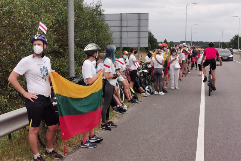 Upd: Друг из Литвы прислал. В Литве сегодня была акция солидарности с Беларусью: от Вильнюса до границы с Беларусью люди встали в одну линию. 32 километра, в акции участвовало 50 тысяч человек. Фото отсюда.