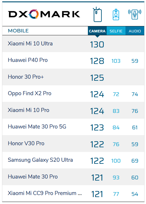 Mi 10 Ultra обогнал даже Huawei P40 Pro. Вот подробный обзор у них на сайте, где они сравнивают эту модель с Huawei P40 Pro (модель Ultra у Huawei еще не вышла) и Samsung Galaxy S20 Ultra.