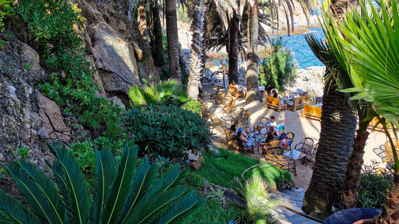 Съездили вчера в кафешку Cala Banys, расположенную в заливе Льорет-де-Мара. Там, говорят, на закате виды совершенно фантастические, но мы приехали в пять вечера, так что фантастических видов не было. Но нам и без этого понравилось.