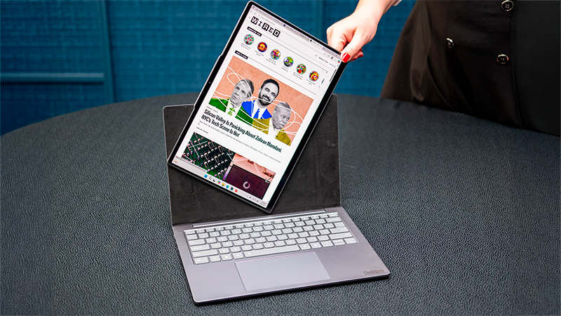 Компания Lenovo на нынешней выставке IFA 2025 показала концепт (в дальнейшем планируемый к выходу в серии) ноутбука, у которого дисплей поворачивается вокруг центральной точки на 90 градусов, позволяя таким образом менять альбомный режим монитора на портретный.