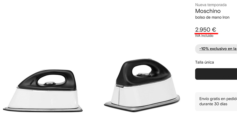 Как вам такая сумочка от Moschino - в виде утюга? Всех дел 2950 евро. И там открывается такой полет для фантазии - сумочка в виде мусорного ведра, в виде пепельницы, в виде унитаза!