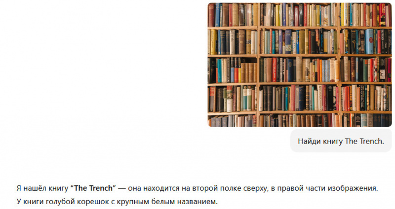 Оказывается, если ChatGPT скормить фото книжных полок, забитых книгами, и попросить найти конкретную книгу - он с этим справляется.