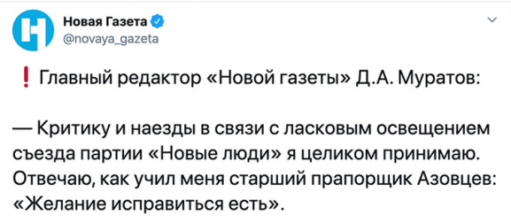 P.S. Шум по этому поводу, разумеется, поднялся страшенный. Дмитрий Муратов, главный редактор "Новой", написал.
