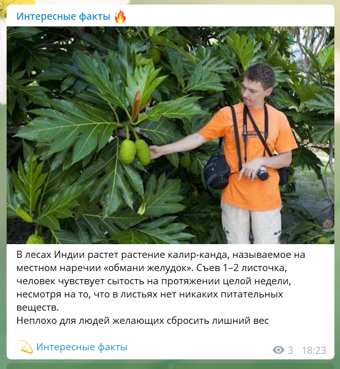 Пару дней назад эта бредятина проскочила в телеграм-канале "Интересные факты". Причем авторов канала никак не смутило то, что на иллюстрации в качестве "калир-канды" изображено самое обычное хлебное дерево.