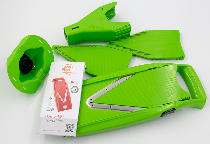 Мне этот набор обошелся в €69 (5993 рубля). Пластик и сталь. Название - Börner V5 Set Base, Starter, Professional. Профессионал, Карл, 69 евро! Я знаю, что я - идиот, раз заплатил 69 евро за набор из пластика и стальных ножей. Я знаю, что это, вполне возможно, реально классная шинковка (я это все проверю и еще напишу), которая, возможно, прослужит много лет и будет меня радовать каждый день, а китайская огорчала бы каждый день.