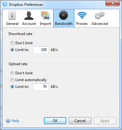 Яркий пример. Клиентская программа Dropbox. Раздел настроек пропускной способности канала. (Обычно он сам нормально регулирует загрузку, но для, например, ADSL приходится ручками подкручивать.)