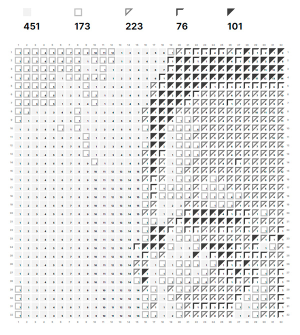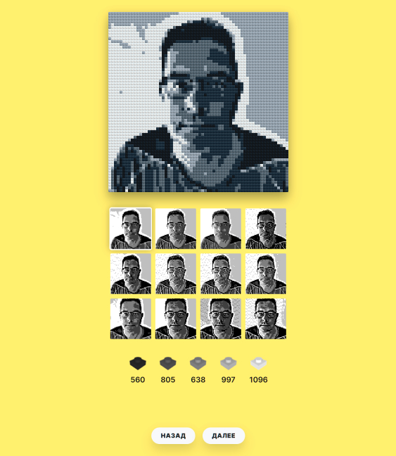Выбрали свой вариант, после этого вам выдадут документ в формате PDF, в котором по шагам расписывается, как собирать этот пазл: сколько кубиков и каких оттенков потребуется.
