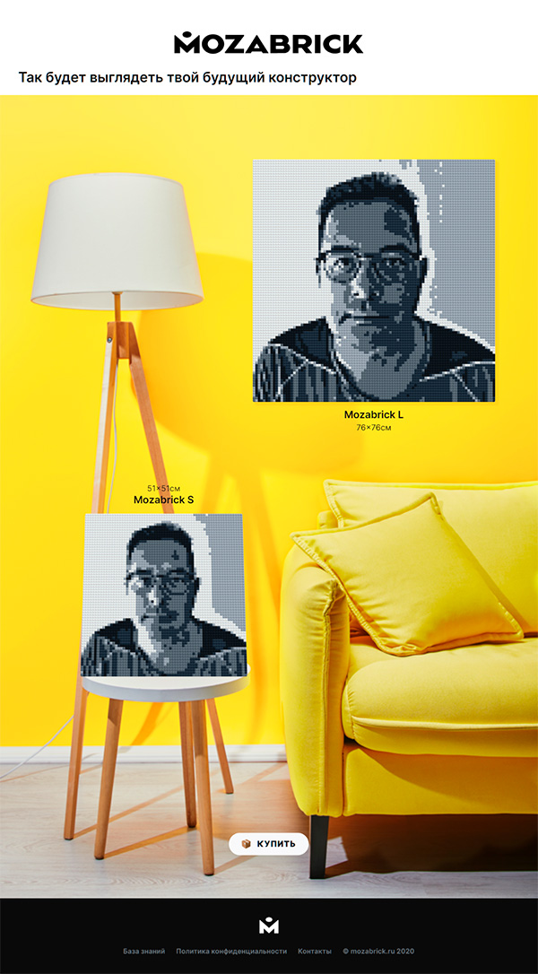 Многим нравится скоротать вечерок за каким-нибудь конструктором или пазлом. Так вот, один из таких увлекательных вариантов - фотоконструктор Mozabrick, и он интереснее пазла, потому что в пазле вам предлагается собрать одну-единственную картинку, а в этом фотоконструкторе картинку вы выбираете сами: это может быть ваше фото, фото кого-то из членов семьи, фото домашнего любимца, некий пейзаж или фото любимого актера.