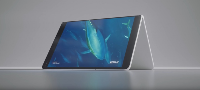 Чисто инженерно - интересно придумано, да. То есть это получается просто планшет, двухэкранный планшет, планшет для рисования, ноутбук с оригинальным вторым дисплеем. Плюс еще и телефон - там, как я понял, симкарта будет (интересно какая - реальная или eSIM).
