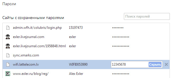 Для любителей хранить логины-пароли непосредственно в браузере. Представьте себе, что кто-то посторонний (или даже не посторонний) сел за ваш компьютер и что-то там делает в браузере Chrome - ну, знаете, всякое там "дай почту проверить". В адресной строке браузера посторонний вводит очень простое заклинание "chrome://settings/passwords", после чего он получает вот такой прелестный списочек, где у каждого пароля есть милая кнопочка "Показать".