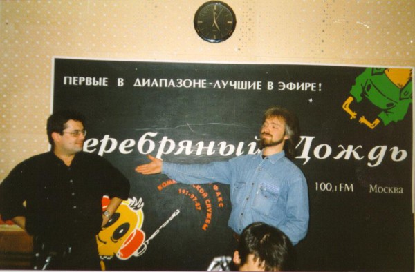Сегодня. Поэтому фоточки. Это мы с Чер-ским на "Серебряном Дожде". Гарик там был ведущим, а я - просто несколько раз присутствовал.