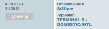 Аэрофлот прислал сообщение о покупке билета и дал ссылку на Virtually There, где были расписаны полеты. Там все на русском языке, вот только время вылета пишется по 12-часовой американской системе. Что я заметил далеко не сразу. Вот было бы классно приехать в аэропорт в 7 утра и выяснить, что вылет - в 20:30 по русской системе. А обратил внимание я на это только потому, что на сайте "Аэрофлота" никак онлайновая регистрация не проходила: писали, что только за 24 часа. Какие, нафиг, 24 часа, спрашивал я тихо, но гневно. Но в какой-то момент все-таки дошло. Хорошо еще, что сегодня выяснил, а не по приезде в аэропорт.