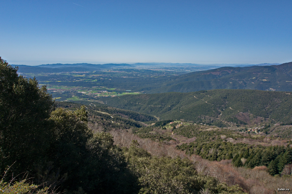 Вспомнил, что забыл выложить несколько фоточек из покатушек на Montseny (это где-то вот здесь). Национальный парк, красивые виды и своеобразная трасса: дорога очень узкая, слева вплотную гора, справа - неогороженная пропасть. Когда попадается встречная машина, а ты едешь со стороны пропасти - становится конкретно весело, потому что разъезжаться приходится почти вплотную к обрыву. Но зато виды.
