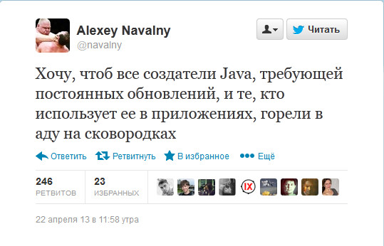 Вообще простая логика показывает, что в приложениях Java использует сам Навальный. Иначе бы он не делал этот пост.