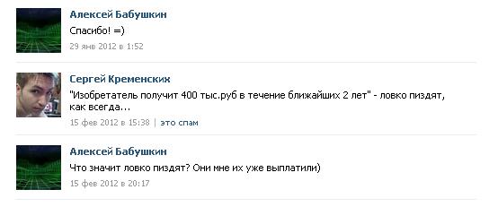 Ну и в заключение хотелось бы пожелать Алеше Бабушкину, талантливому студенту-ученому, дальнейших творческих успехов и дальнейших грантов! Кто его знает, что этот мощный ум еще выдумает? Редакция будет следить за его творческой судьбой.