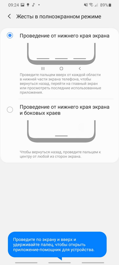 А вот компания Samsung в свои смартфоны придумала добавлять еще один вариант жестов, где все действия производятся только от нижнего края экрана. И это отличная идея: такие жесты намного удобнее, чем стандартные. Очень жду, когда остальные производители додумаются эту идею позаимствовать!