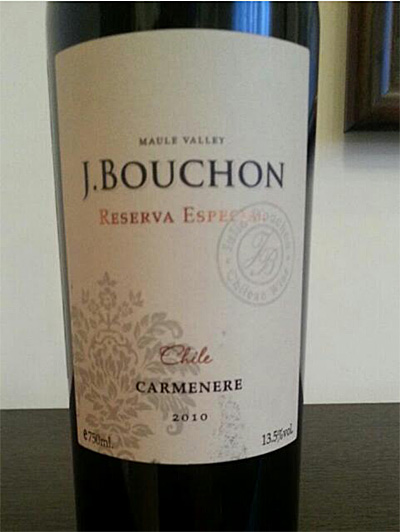 Попробовал чилийское J. Bouchon Reserva Especial Carmenère 2010: хозяйство Хулио Бушона, виноград 100% карменер. Как я понял, самое именитое вино этого хозяйства. Цена в Москве: 640-800 рублей. (Я покупал в обычном сетевом магазине где-то за 670.)