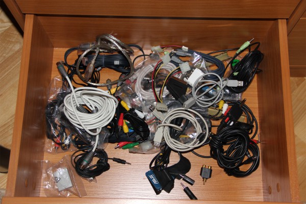 Во внезапном припадке домовитости разобрал три здоровенных ящика со всяким компьютерным барахлом: проводами, переходниками, какими-то старыми платами, гаджетами и так далее. Выкинул в мусоропровод три здоровенных сумки. Ящики сразу приняли божеский вид, а кроме того, я нашел несколько проводочков и переходников, которые были мне давно нужны.